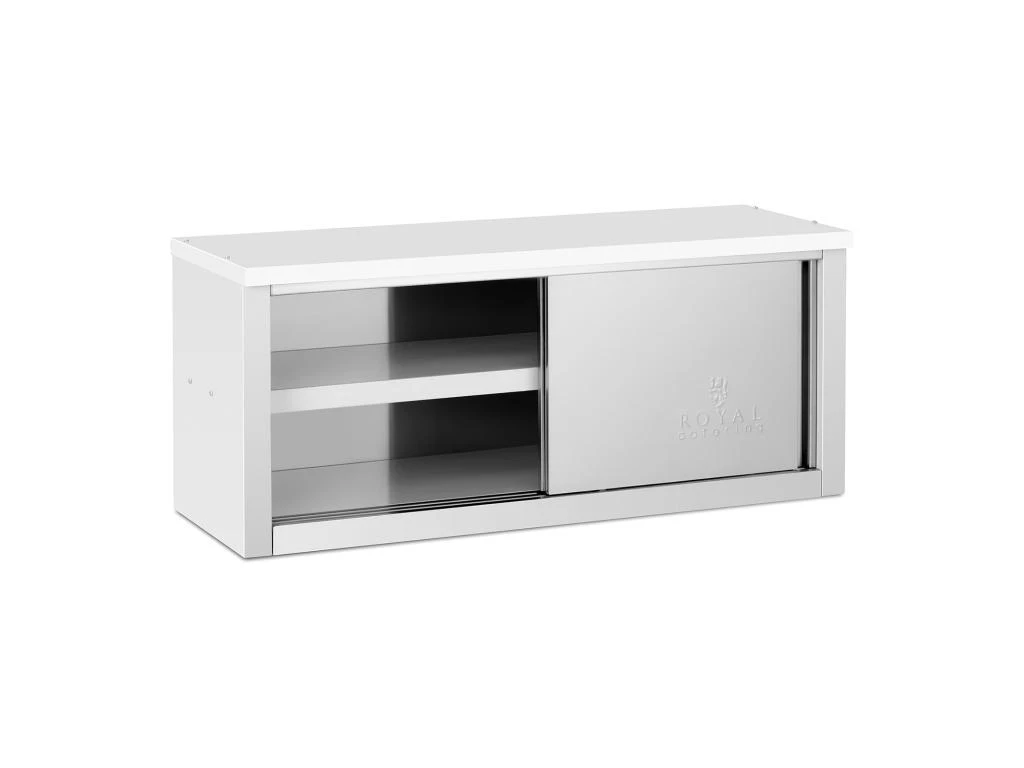 Une tablette centrale divise l’espace de façon optimale à l’intérieur du placard suspendu en inox.