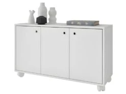 Buffet – Meuble de Rangement Multifonctions 3 Portes sur Roulettes Coloris Blanc