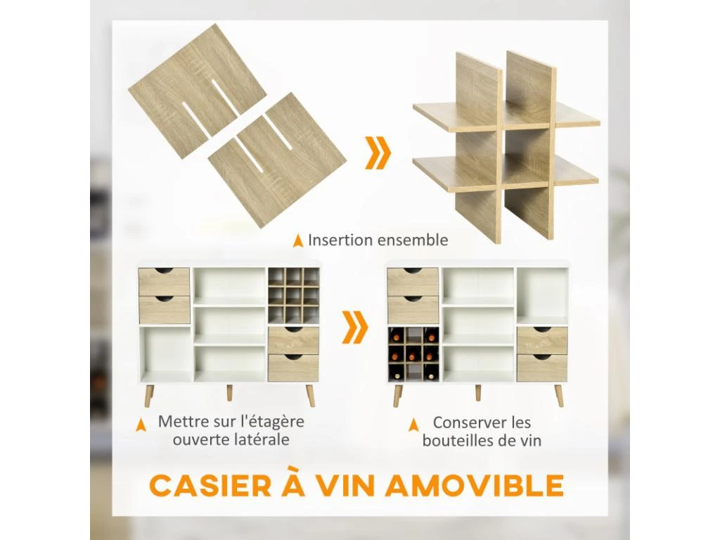 – Multi-rangement : 4 tiroirs, 4 niches, range bouteilles vous permettant de ranger vaiselles et/ou accessoires