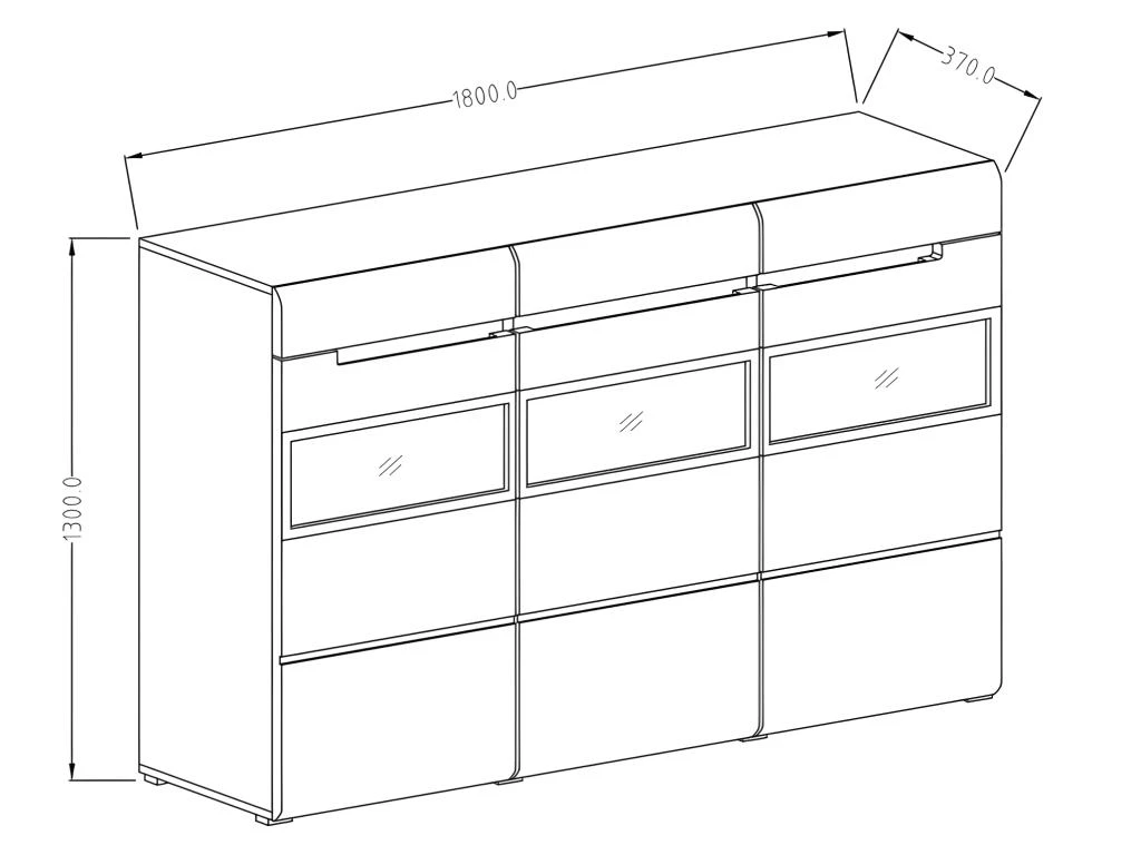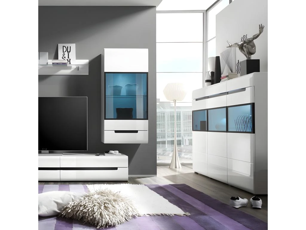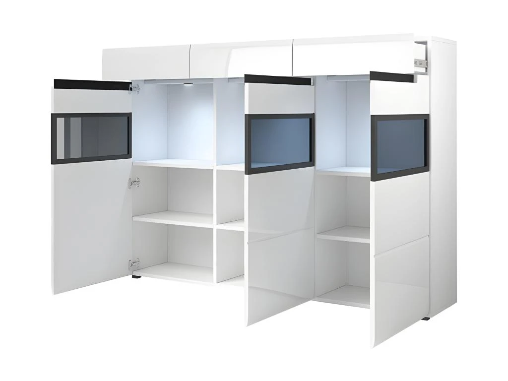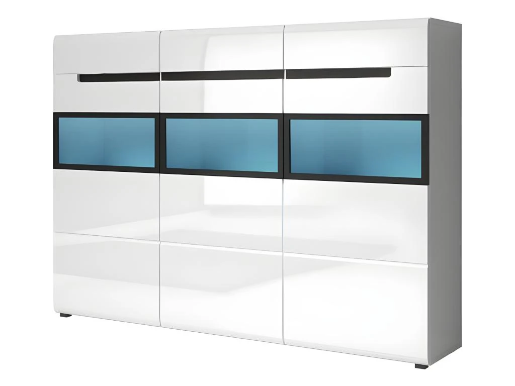 – CARACTÉRISTIQUES : Buffet partiellement vitrées, éclairage LED intégré. 9 espaces de rangement derrière les 3 portes. 3 tiroirs sur le haut du buffet.