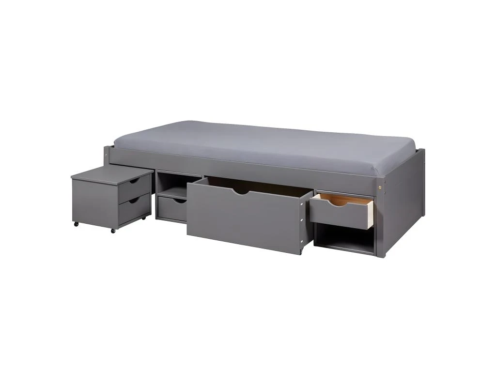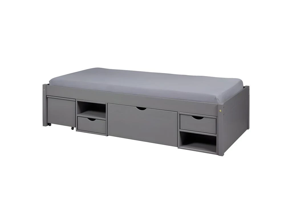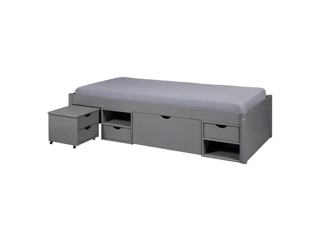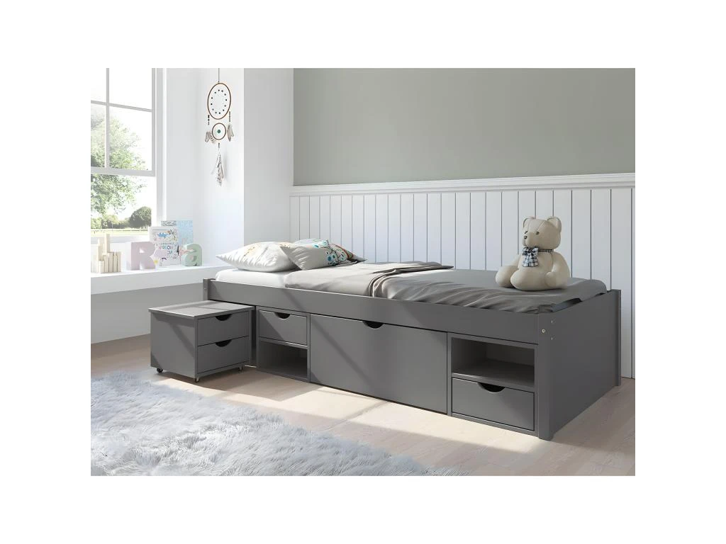 Lit 90x200cm Muti-Rangement Bois Masssif Anthracite de la gamme Cali.