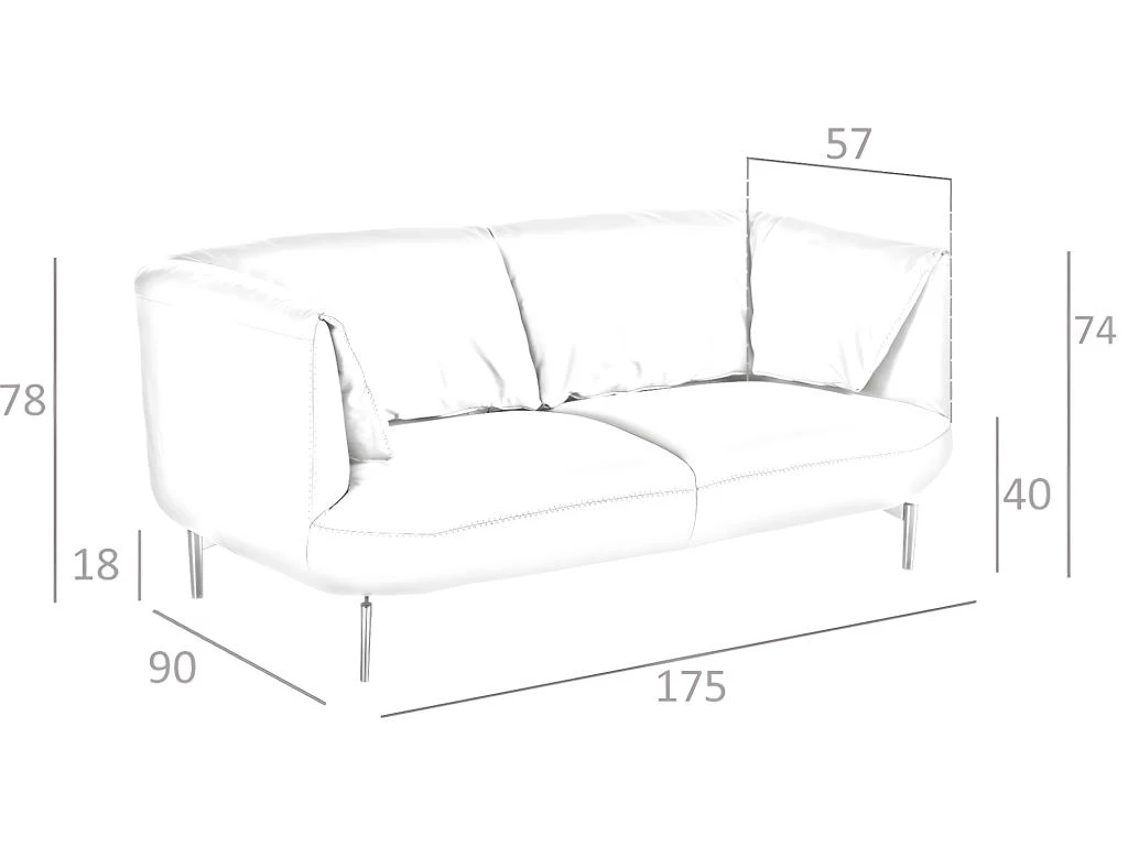 Canapé 2 places au design moderne recouvert de cuir de vachettette gris de 1,5 mm d’épaisseur avec accoudoirs. Un canapé de style avant-gardiste et contemporain, avec une structure interne robuste en bois de pin naturel et des pieds en acier massif poli de couleur foncée d’origine qui lui donnent cette touche de sophistication et d’élégance que vous recherchez dans votre salon. Son dossier et son assise en mousse polyuréthane 20kg / m3, vous offrent le confort supplémentaire dont vous avez besoin pour vous détendre. L’exemple parfait que l’élégance, le confort et le design peuvent aller de pair