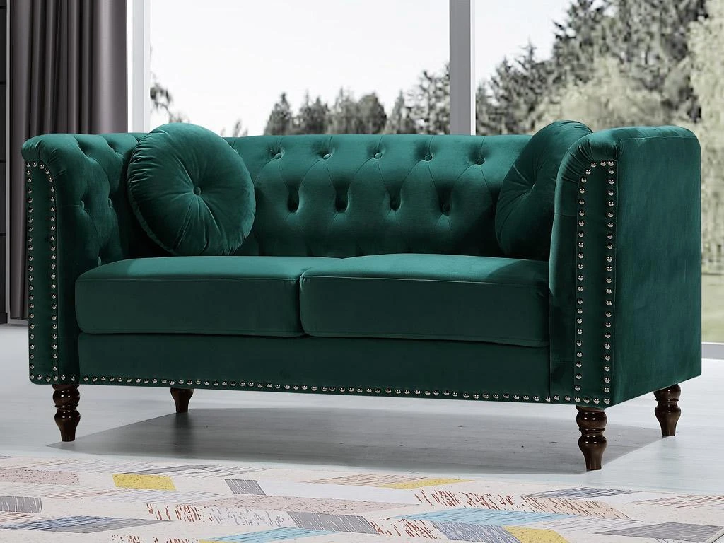 Envie d’une ambiance chaleureuse et vintage dans votre salon ? Le canapé TURNER sera votre canapé idéal. Inspiré du modèle mythique chesterfield, il apportera une touche vintage à votre intérieur. Son revêtement en velours ainsi que sa finition cloutée font de lui un canapé glamour qui donnera de la douceur et du cachet à votre pièce.