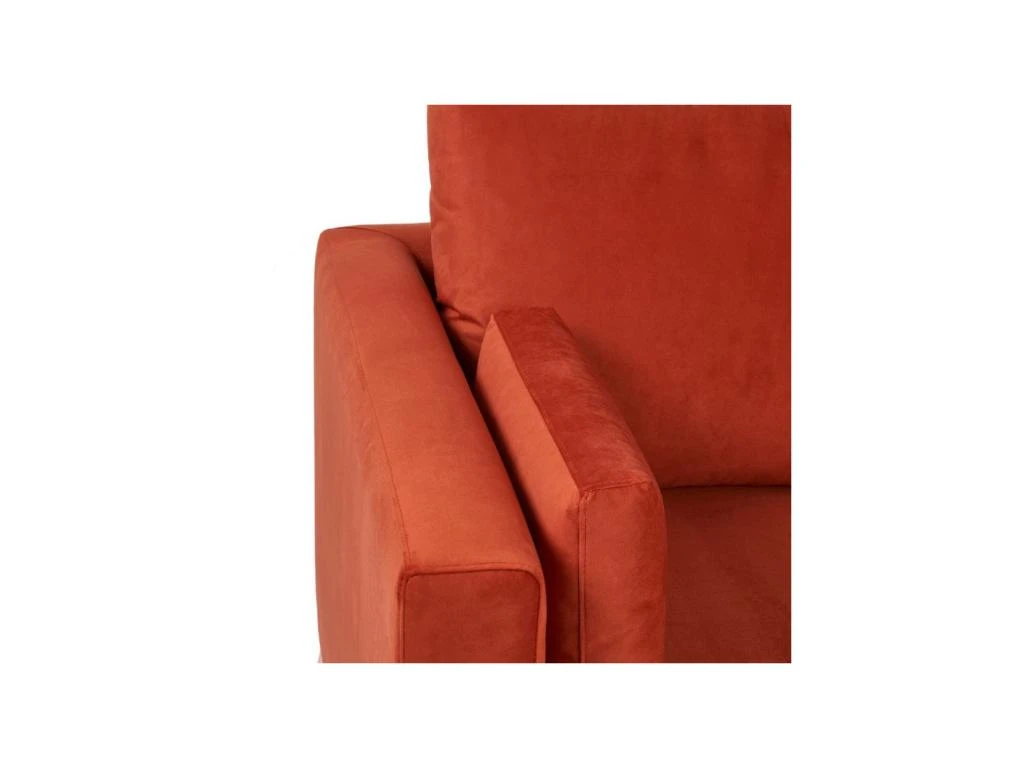 La belle qualité perçue de ce canapé se retrouve dans les moindres détails, ainsi mousses de qualité au confort équilibré, carcasse robuste faisant appel à du bois de Pin et belles proportions se combinent à un tissu couleur Terracotta épais et soyeux.