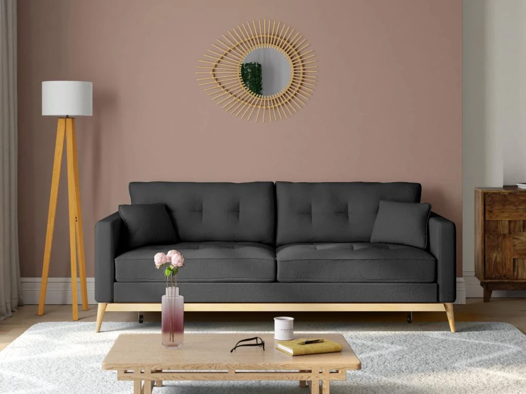 Vous recherchez un canapé pratique mais également sophistiqué ? Optez pour le canapé convertible KENZA. Dôté de pieds en bois et ses coussins de déco, ce canapé au style scandinave et aux coloris tendances s’intègrera parfaitement à votre intérieur tout en lui apportant une touche de charme.