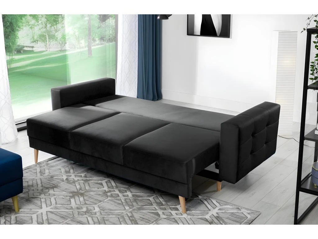 Très joli canapé 3 places en tissu de luxe, convertible – ASVENA. Ce très beau canapé répond aux plus exigeants qui recherchent à la fois des fonctionnalités pratiques et un grand confort. Grâce à son large espace de couchage à ouverture facile. Tissu de grande qualité et agréable au quotidien. Tissu velours très doux et de la catégorie luxe. Assise très confortable grâce à son excellent rembourrage. Très bonne qualité de fabrication. Fabrication européenne. Tissu de la catégorie la plus élevée.