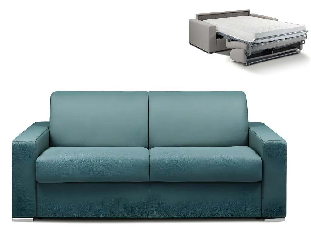 Canapé 3 Places Convertible Express En Tissu CALITO – Bleu – Couchage Lattes Larges 140 Cm – Matelas 18 Cm