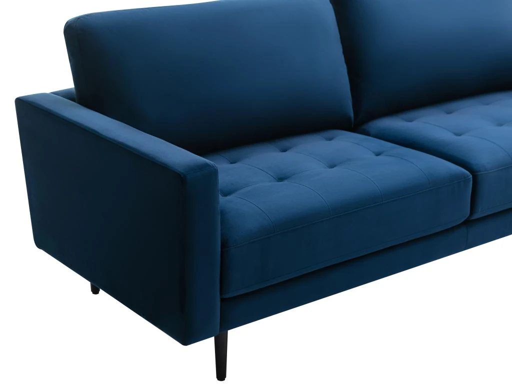 Vous désirez rendre votre intérieur chaleureux ? Laissez-vous tenter par la douceur et le style du canapé ESTELA. Son revêtement en velours, ses pieds en métal noir, son assise capitonnée et ses coloris tendances font de lui un canapé design et accueillant, tout en vous apportant un confort maximal.