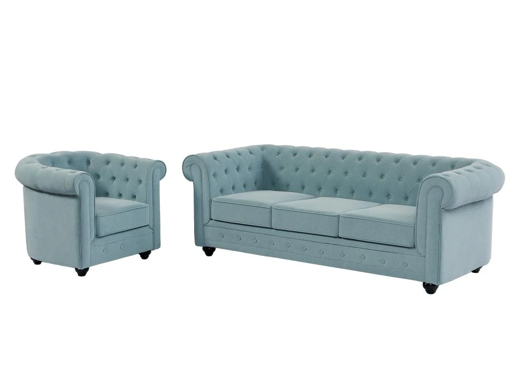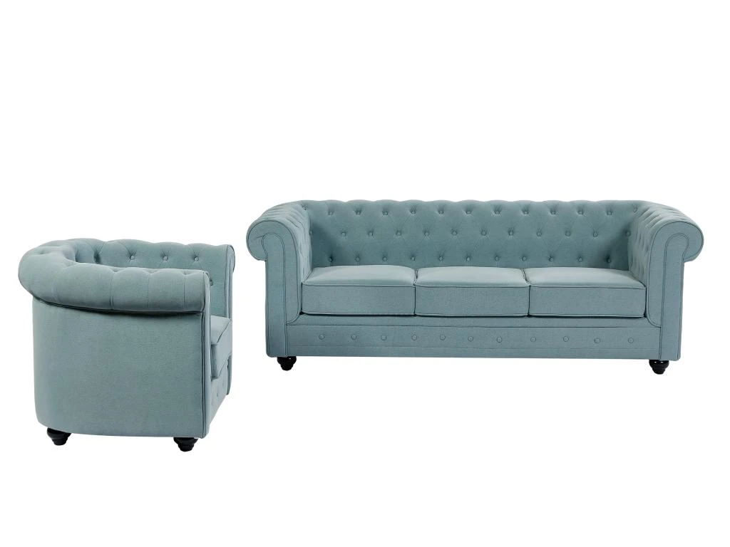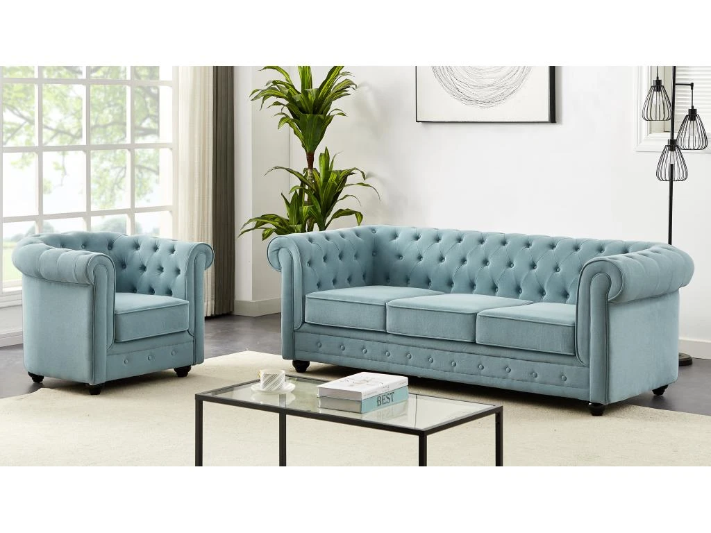 Vous souhaitez ajouter une touche élégante à votre intérieur ? Découvrez les canapés et fauteuils CHESTERFIELD. Doté d’un dossier richement capitonné, cet ensemble vous procure non seulement un soutien ergonomique, mais ajoute également une texture raffinée à l’ensemble. Le design intemporel du Chesterfield se marie harmonieusement avec différents styles de décoration, que ce soit dans un intérieur traditionnel ou moderne.