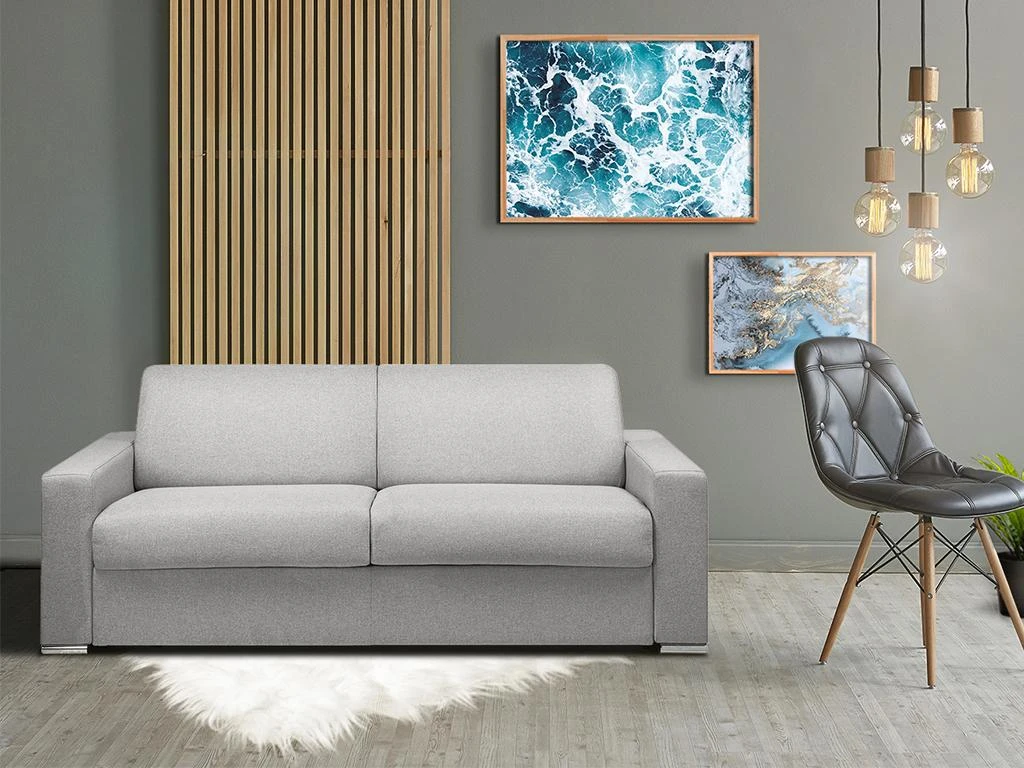 Vous souhaitez optimiser l’espace disponible dans votre salon ? Le canapé convertible en tissu CALITO est fait pour vous ! En plus d’offrir un lit d’appoint, il dispose d’un design qui s’intègre harmonieusement dans votre intérieur. Ce canapé est conçu pour vous offrir un espace de détente accueillant tout en vous permettant de transformer facilement votre espace en un lit douillet pour vos invités. Ses accoudoirs larges vous offrent un espace supplémentaire pour poser vos objets préférés, comme une tasse de thé ou un livre captivant. Disponible en plusieurs largeurs pour s’adapter parfaitement à la taille de votre salon, ce canapé est également proposé avec différentes épaisseurs de matelas pour répondre à vos préférences en termes de fermeté.