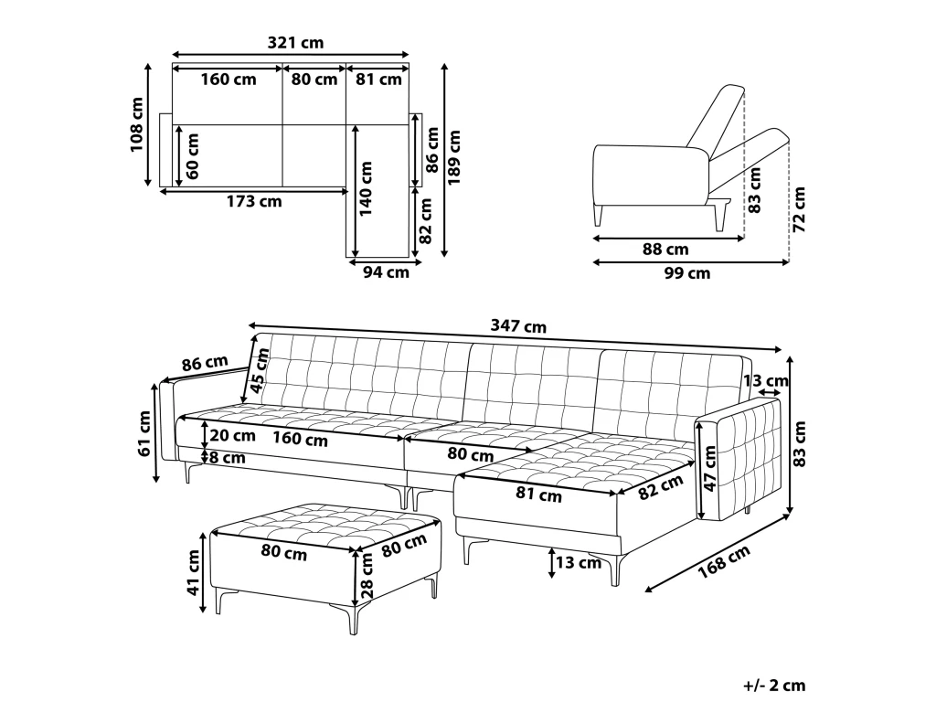 Caractéristiques clés: Facilement convertible en un canapé-lit, Peut être combiné avec d’autres modules du même modèle, Dossier réglable en 3 positions, Offre un grand moment de détente, Optimaler Sitzkomfort, Style élégant, Capitonnage décoratif classique, Rembourrage de qualité supérieure, Tissu soyeux et velouté