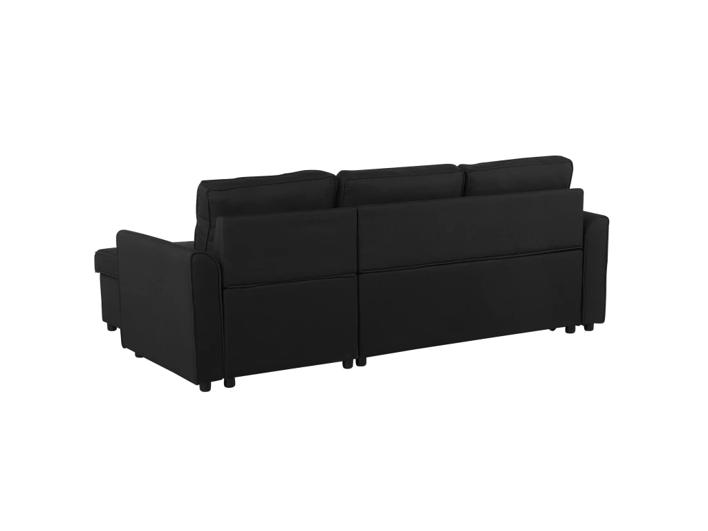 Canapé Angle Côté Droit Convertible En Tissu Noir 3 Places NESNA