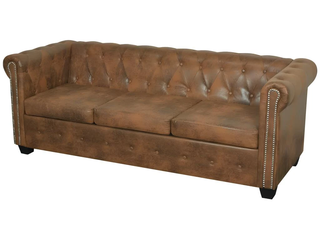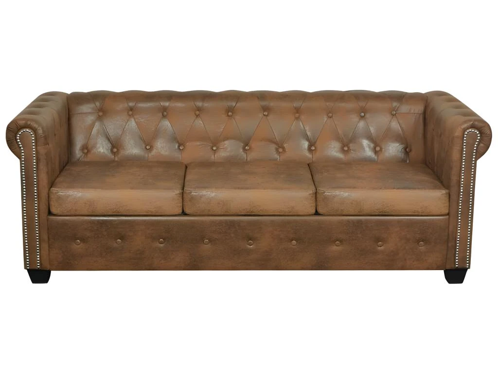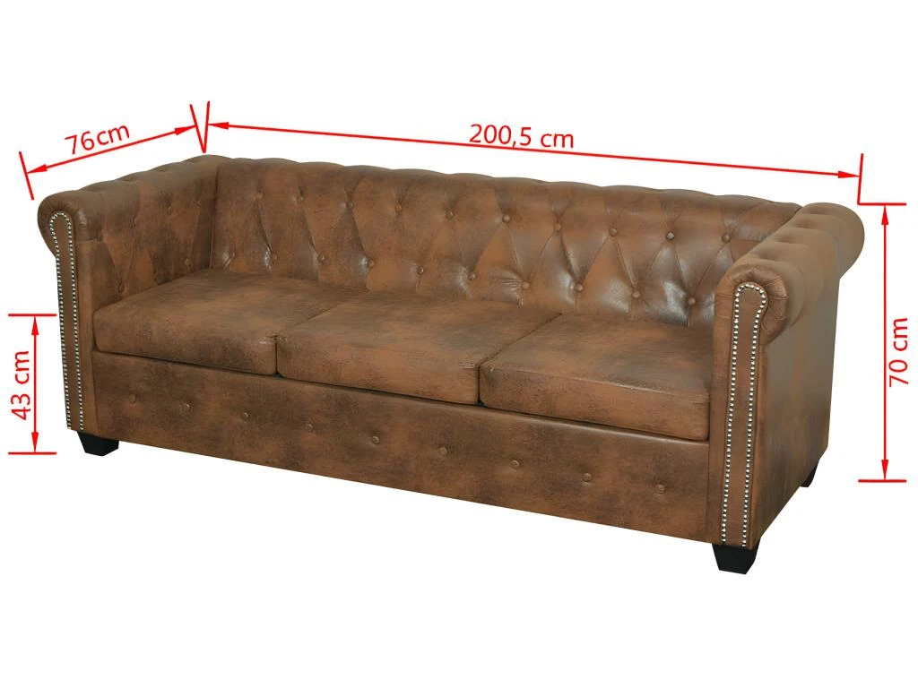 Ce canapé de Chesterfield est la combinaison parfaite de confort et d’élégance et sera un excellent ajout à tout décor de maison ou de bureau. Ce canapé à 3 places, avec ses détails à touffes et à clous et ses accoudoirs courbés, va ajouter une touche de luxe, de classe et de style à tout décor intérieur.