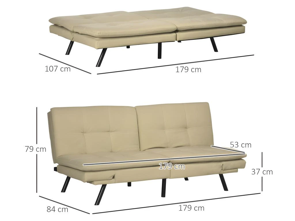 – Dim. totales canapé (position assis droit) : 179L x 84P x 79H cm