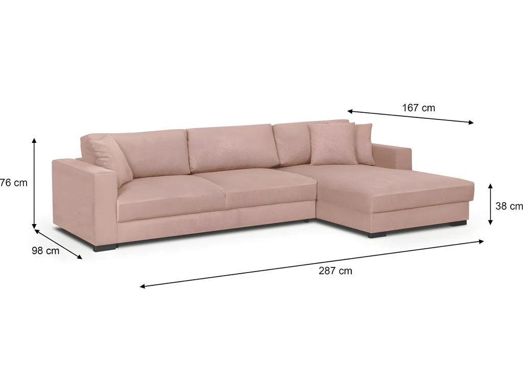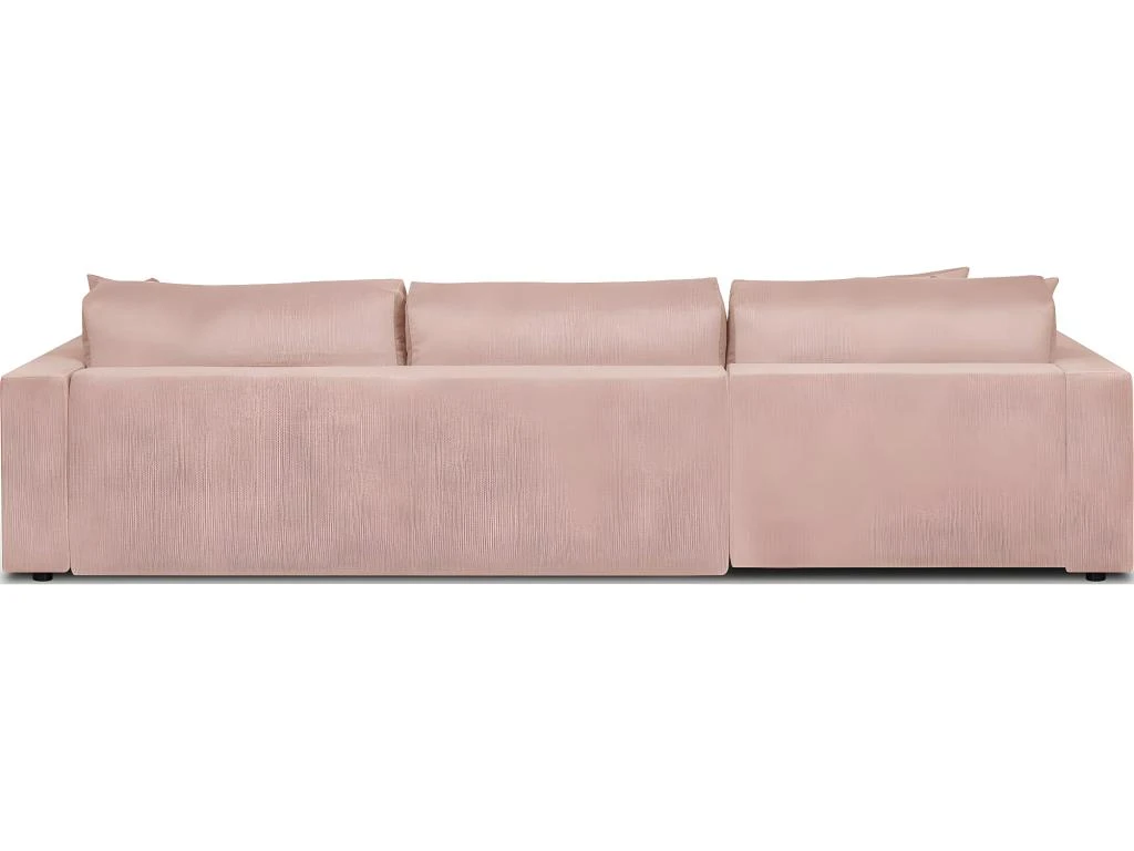 Canapé d’angle convertible Robin 5 places en velours rose pâle avec coffre de rangement