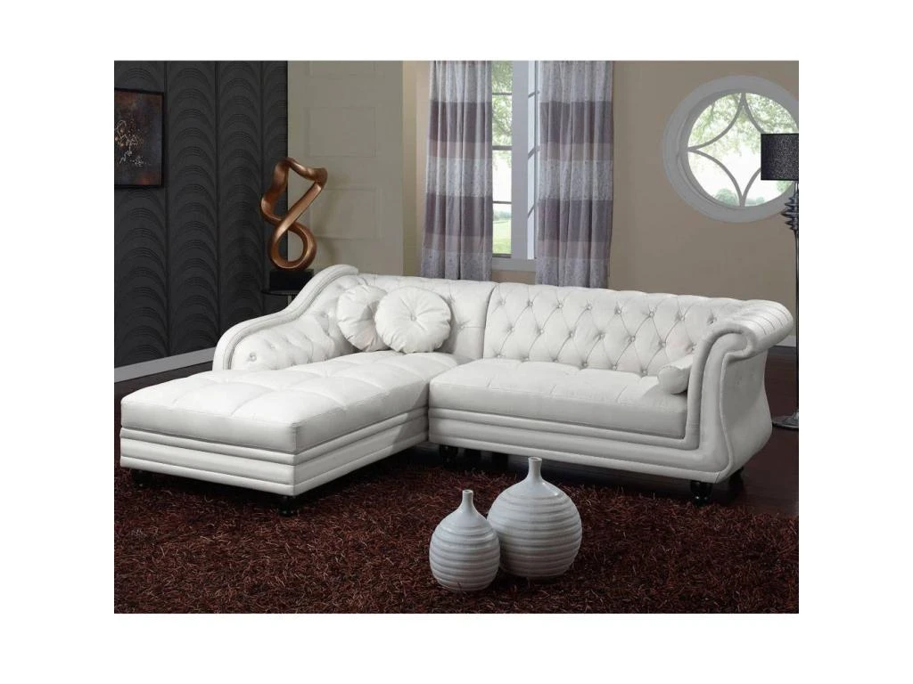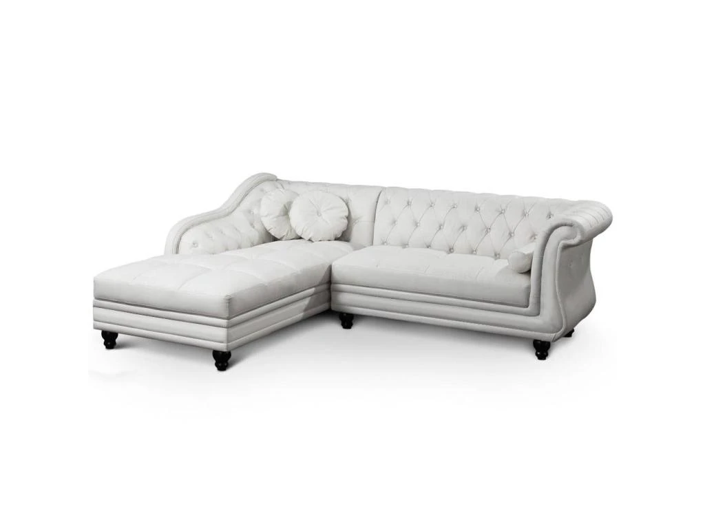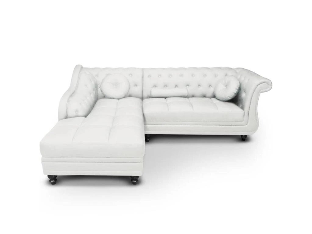 Transformez votre intérieur, optez pour ce canapé d’angle de style Chesterfield. Chic et élégant, il reflète à merveille le raffinement à l’anglaise. Il est le meuble idéal pour parfaire un décor « so british ». Ce modèle de canapé est bien plus confortable que les traditionnels canapés droits 3 places. Sa surface est suffisamment large pour pouvoir accueillir jusqu’à 5 personnes adultes. Il s’adresse à quiconque souhaitant profiter d’un canapé de haute qualité, à la fois fiable et décoratif. Sa structure en bois robuste permettra une utilisation optimale pendant de longues années. Le revêtement en PU souligne également le côté solide de ce canapé. Cette matière, à la fois résistante et agréable au toucher préserve votre canapé des usures du temps. Vous recherchez un canapé design ? Ce modèle de style Chesterfield fera parfaitement l’affaire. Sa couleur tendance rehausse l’élégance de ce canapé d’angle British de style Chesterfield, tout en mettant en valeur votre décoration intérieure. Il est aussi disponible dans différents coloris comme le blanc, le noir ou le marron, pour vous permettre de mieux l’harmoniser avec le décor général de votre pièce à vivre. L’autre avantage de ce canapé Chesterfield par rapport aux autres modèles est qu’il est doté d’une méridienne. Vous disposez ainsi d’un espace pour vous permettre de vous allonger et de profiter d’un véritable moment de détente devant la télé, tout en laissant de la place aux autres. Profitez de l’élégance et du raffinement des mobiliers de style britannique dans votre intérieur, grâce à ce canapé d’anglais de type Chesterfield.Catégories Associées :Canapé 5 places, Canapé blanc, Canapé similiCatégories Associées :Canapé d’angle blanc