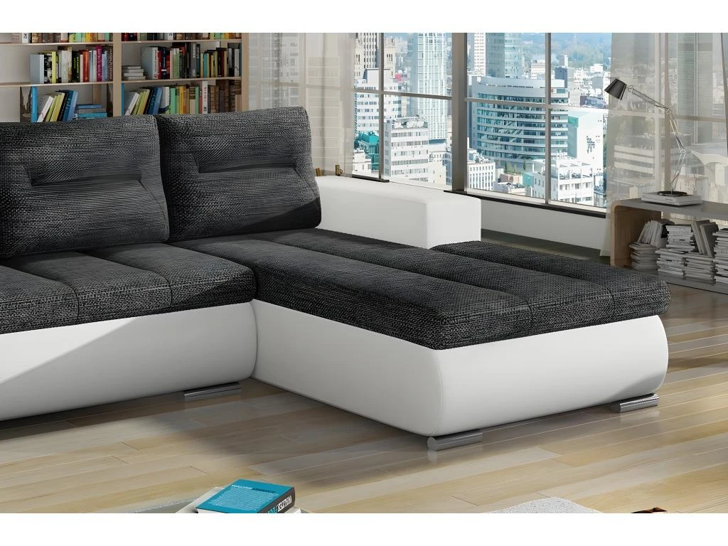 Design pur, forme épurée et élégante. Ce canapé d’angle allie simplicité et élégance, et il s’intègre parfaitement dans les aménagements industriels. La structure solide est une garantie pour un usage à long terme tout en bénéficiant d’un canapé élégant. Tout cela grâce à l’utilisation de matériaux de rembourrage de la meilleure qualité. Le canapé peut être choisi dans différentes combinaisons de couleurs et de matières, il peut être commandé en bicolore ou en uni. Il dispose d’un espace de rangement. Dispose d’un élément décoratif sur le côté. Ce très joli canapé dispose de coutures élégantes sur les assises et les dossiers.
