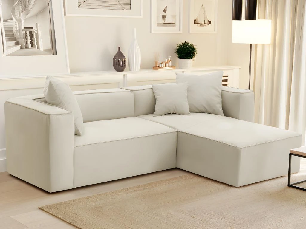 Vous êtes à la recherche d’un canapé d’angle en tissu style charme vintage ? N’hésitez plus et optez pour le canapé d’angle crème ACACE ! Doté d’une méridienne confortable et de larges coussins d’assise, le canapé ACACE vous apportera le confort dont vous rêviez. Son revêtement en tissu crème donnera une touche d’élégance à votre salon.