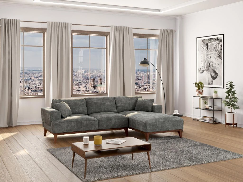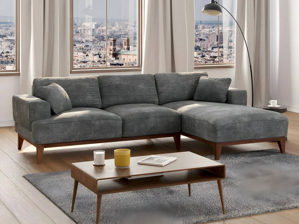 Vous recherchez comment rendre votre intérieur chic ? Optez pour le canapé d’angle JOSEFA. Des pieds en bois, une assise profonde et acceuillante et des coloris très tendances apportent à ce canapé d’angle en tissu tout ce dont il a besoin pour sublimer votre salon.