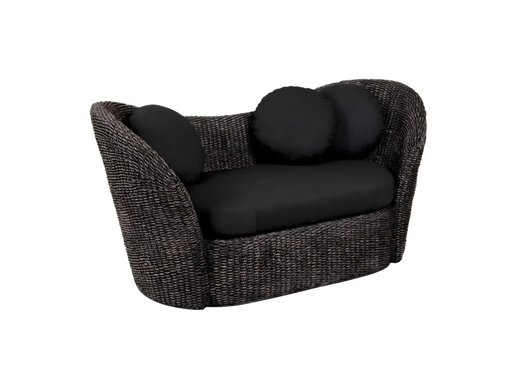 Enrichi d’un design romantique – cocooning, le canapé en rotin tressé noir 2 places, se veut objet de déco d’intérieur ou meuble de terrasse, et instrument de détente à part entière. Il est rehaussé d’un tressage en rotin sublimé de coussinières, déhoussables, 100% coton. Une structure en jacinthe d’eau assure sa robustesse et s’accompagne d’une garantie de 12 mois en gage de son inhérence.