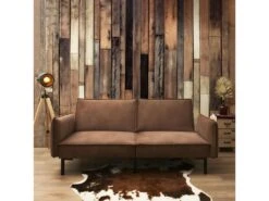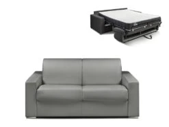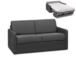 Canapé 2 Places Convertible Express En Simili CALIFE – Taupe – Couchage 120 Cm – Matelas 14 Cm
