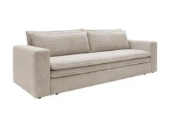 Canapé 3 Places Convertible Express En Velours Côtelé Beige – Couchage 140 Cm – Matelas 14 Cm LORETO