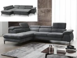 Canapé Grand Angle Convertible En Velours Anthracite SEPINA De PASCAL MORABITO – Angle Gauche
