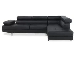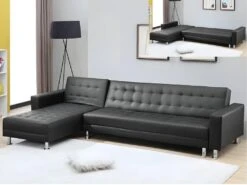 Canapé D’Angle MARIA Réversible Et Convertible Avec Coffre En Simili Et Microfibre – Gris Et Noir