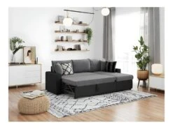 Canapé D’angle Convertible Avec Rangement En Tissu Et Simili RABELAIS – Bicolore Anthracite Et Noir