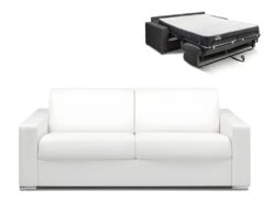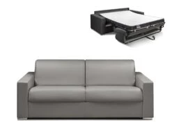 Canapé 4 Places Convertible Express En Simili CALITO – Gris – Couchage 160 Cm – Matelas 18 Cm
