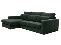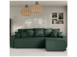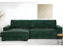 Canapé D’angle Réversible Et Convertible 4 Places Avec Coffre Isaac Velours Côtelé Vert Sapin