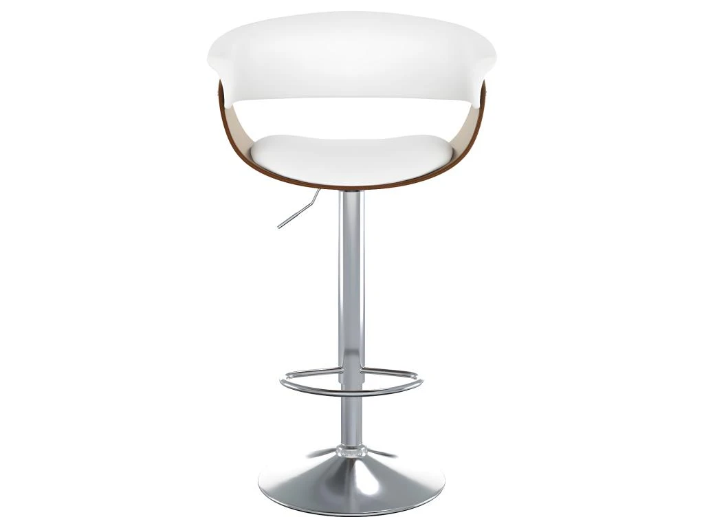 Enveloppante et ergonomique, notre chaise de bar blanche Basile avec accoudoirs est à la fois aérienne et d’une grande stabilité sur son socle Ø41 cm. Vous apprécierez l’harmonieux contraste entre le PU blanc et le bois plaqué noyer de son assise toute en rondeurs.