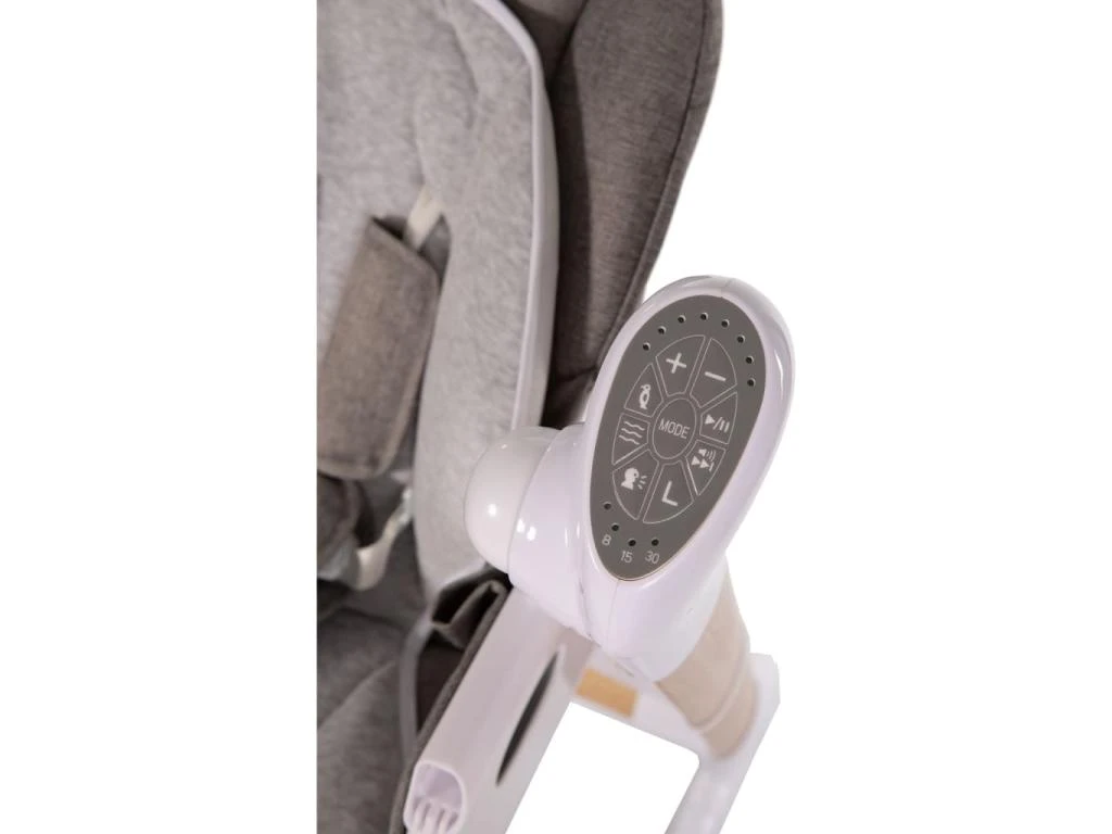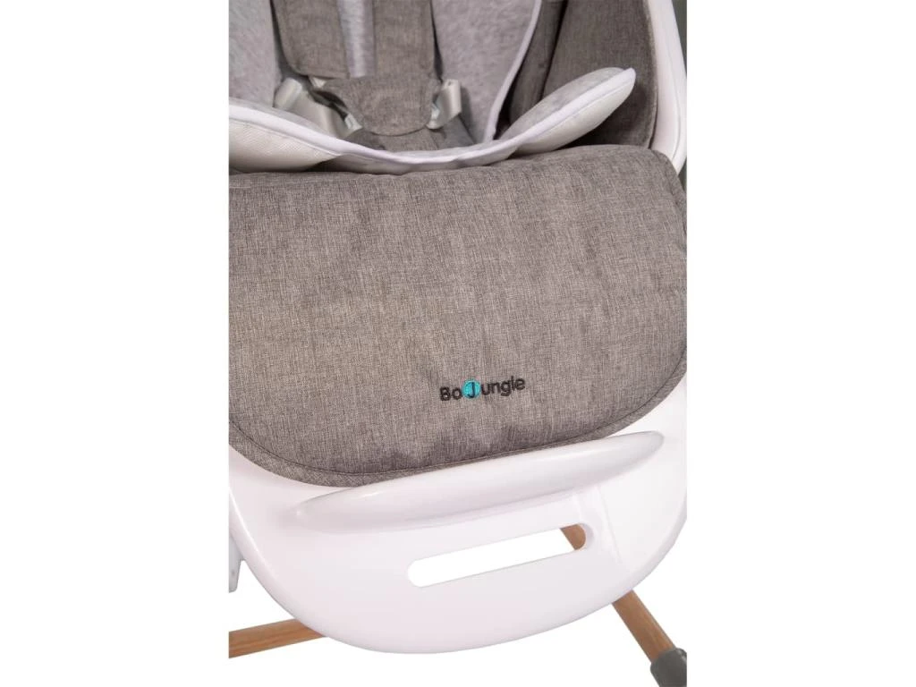 La hauteur de la chaise haute est réglable en 6 positions, le plateau de table (amovible) en 3 positions et le repose-pieds en 4 positions. De cette façon, vous trouverez toujours une bonne position pour votre enfant ! Le repose-pieds peut être ajusté à la longueur des jambes de votre tout-petit. De plus, la chaise haute berçante Bo Jungle a le choix entre 8 vitesses de balancement différentes, et vous pouvez choisir de jouer l’une des 12 mélodies ou sons de la nature. La chaise dispose également d’une connexion USB pour que vous puissiez écouter votre propre musique ! Il y a également un capteur de mouvement sur la chaise haute pour bébé, qui peut être contrôlé à l’aide d’une application disponible pour iOS et Android.