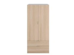 Armoire 2 Portes Battantes + 2 Tiroirs Chêne – KAMUSI – L 81 X L 52 X H 180 Cm