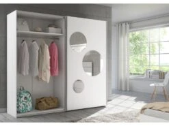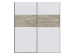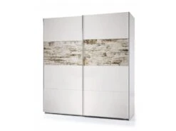 Armoire 2 Portes Coulissantes Blanc/Bois Blanchi – COPIST – L 180 X L 63 X H 200 Cm