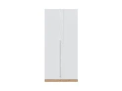 Armoire 2 Portes Battantes Blanc/Chêne – TOZA – L 90 X L 52 X H 200 Cm