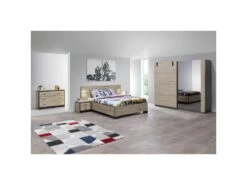 BERTO – Grande Armoire Ă Portes Coulissantes – Miroir – 5 Ă©tagĂšres + Tringle – 218x183x61 Cm