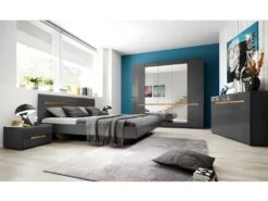 Armoire LINA Blanche Et Noire Brillante Tout équipée. Meuble Design Pour Votre Chambre à Coucher