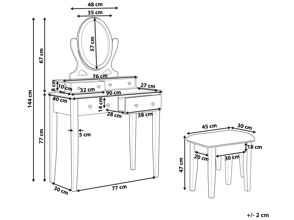 L`offre inclue: 1 x Tabouret, 1 x Coiffeuse