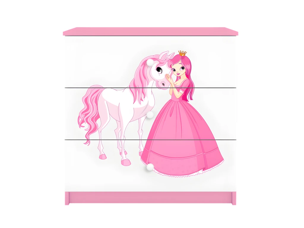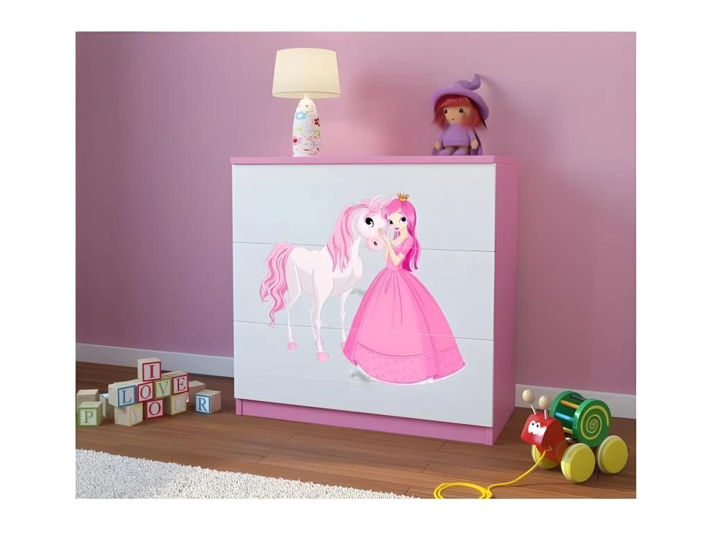 Commode Enfant PRINCESSE ET SON CHEVAL – 3 Tiroirs 80 Cm X 80 Cm X 40 Cm – Rose