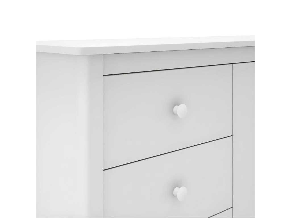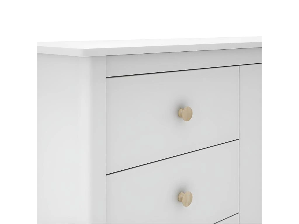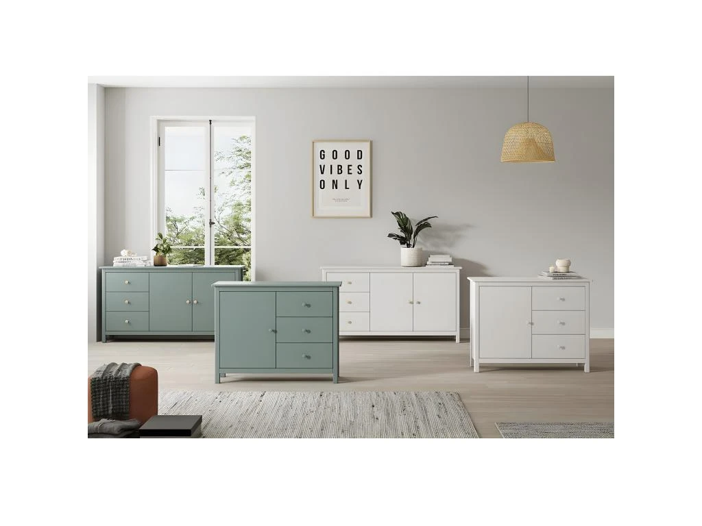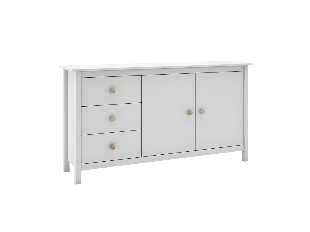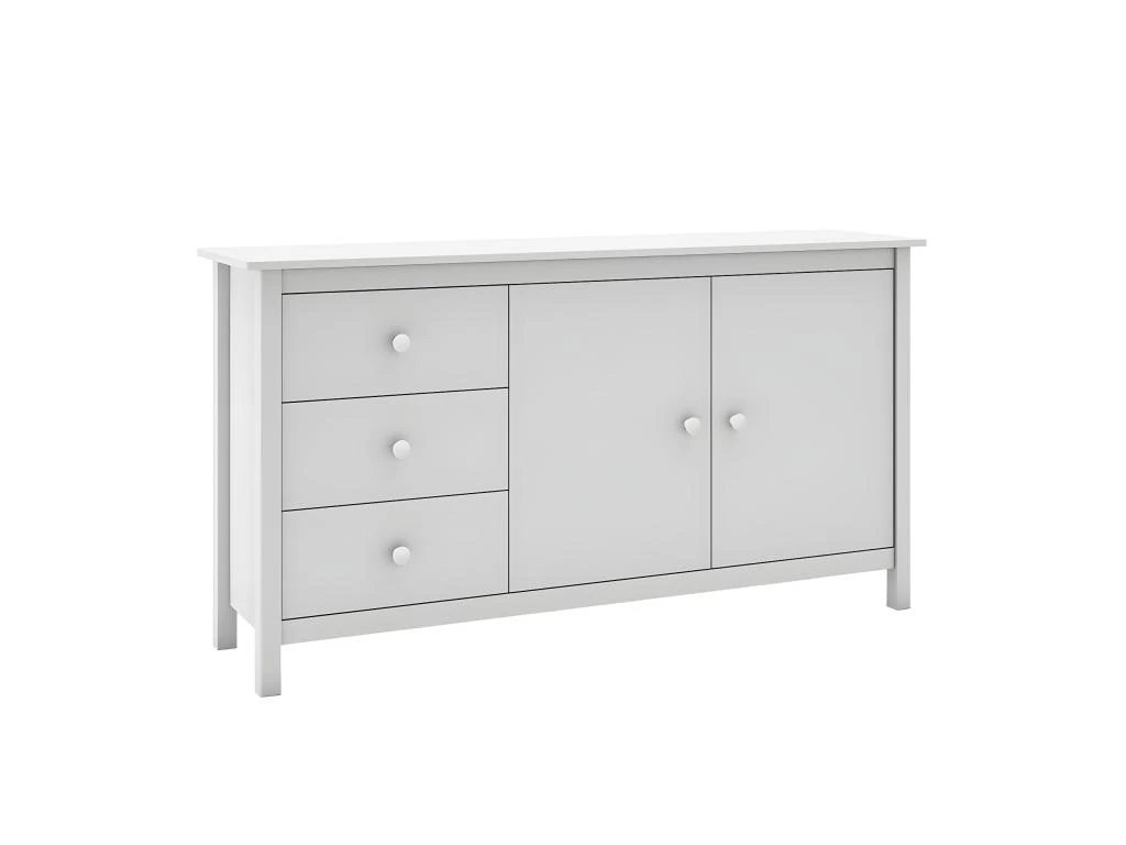 Buffet L.130cm 2 Portes 3 Tiroirs en Pin Massif Blanc de la gamme Dava.