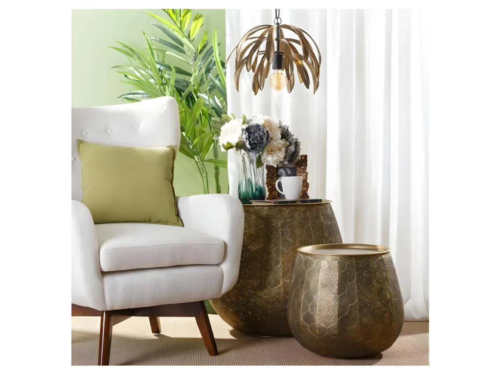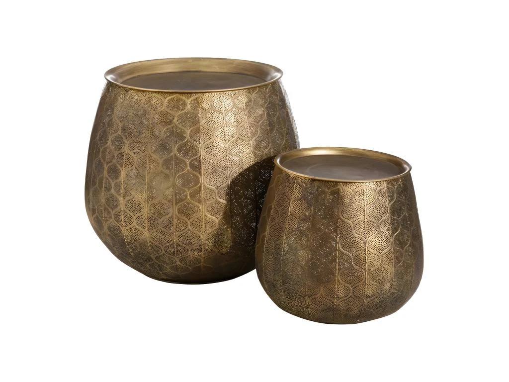Finalisez la déco de votre salon ambiance Bout du monde avec ce lot de 2 tables d’appoint rondes proposant une très belle finition Or vieilli.