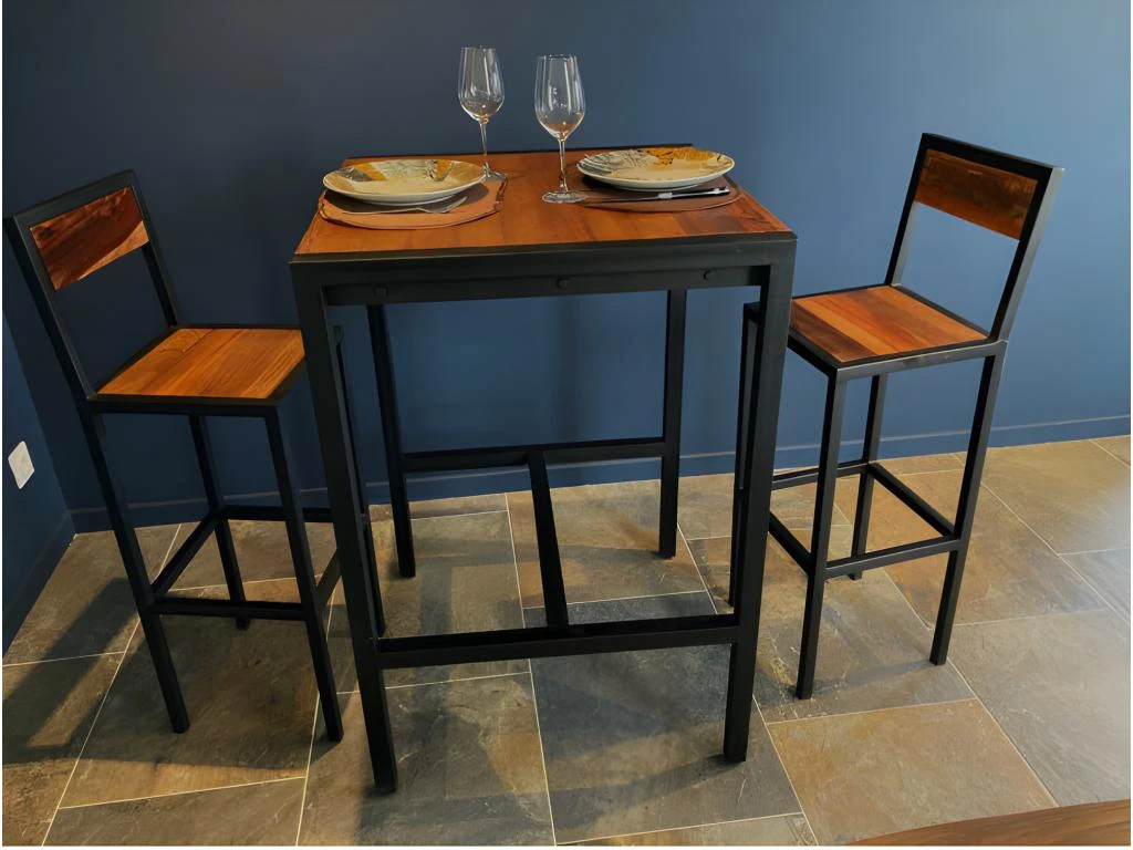 Ce tabouret avec dossier convient plus particuliĂšrement Ă une table de repas haute, un mange debout ou un bar avec un plateau hauteur finie de 100 Ă 105 cm.