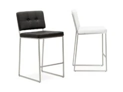 Tabouret de bar ou chaise haute pour mange-debout aux lignes sobres et esthétiques de style industriel.