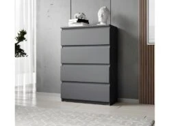 La commode Arenal constitue le meuble de rangement qui, outre son immense capacité de rangement, se distingue par sa forme classique, le design et la fonctionnalité. La simplicité de ce meuble introduira à votre intérieur une touche de fraîcheur. Équipée de quatre tiroirs spacieux, Arenal contiendra toutes vos affaires et vous gagnerez plus d’espace libre dans votre pièce. En outre, le grand plateau du meuble deviendra une place idéale pour y exposer vos décos, bougies ou photos favorites. Organisez votre espace avec la commode Arenal! Les dimensions : largeur : 70 cm hauteur : 100 cm longueur : 35 cm Notez bien : Nos meubles sont conçus pour l’auto-assemblage, donc si vous n’êtes pas un expert, faites appel aux services d’un professionnel. * Seuls les meubles non assemblés peuvent être retournés