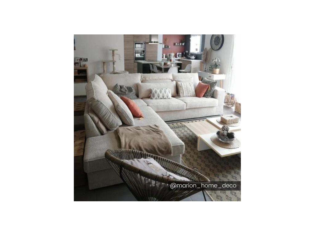 Le grand canapé d’angle MONDOVI saura vous séduire grâce à son velours côtelé très tendance qui vous apportera douceur et confort au quotidien. Ses nombreux coussins en velours offrent également un accueil moelleux et délicat. Avec son format XXL, profitez de moments conviviaux entre amis ou en famille !