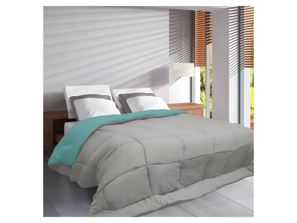 POYET MOTTE Couette légere Galet & Lac – 220x240cm – Enveloppe : microfibre 100% polyester – Garnissage : 100% polyester fibres creuses siliconées 200 gr/m² – Finition surpiquée motif carré, biais assorti – Certificat oeko-Tex – Traitement ignifugé STOPFLAM – Lavage a 40°C.