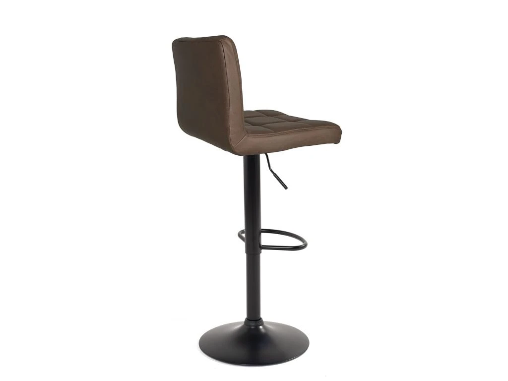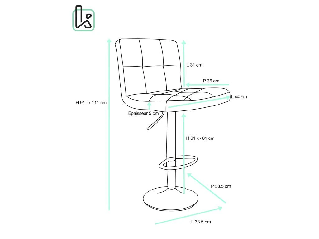 Cette chaise de Bar aux finitions soignées, piètement et repose pied chromés, réglable en hauteur grâce à un vérin de gaz. Il repose sur une base Diamètre 38.5 cm. Pour une stabilité optimale