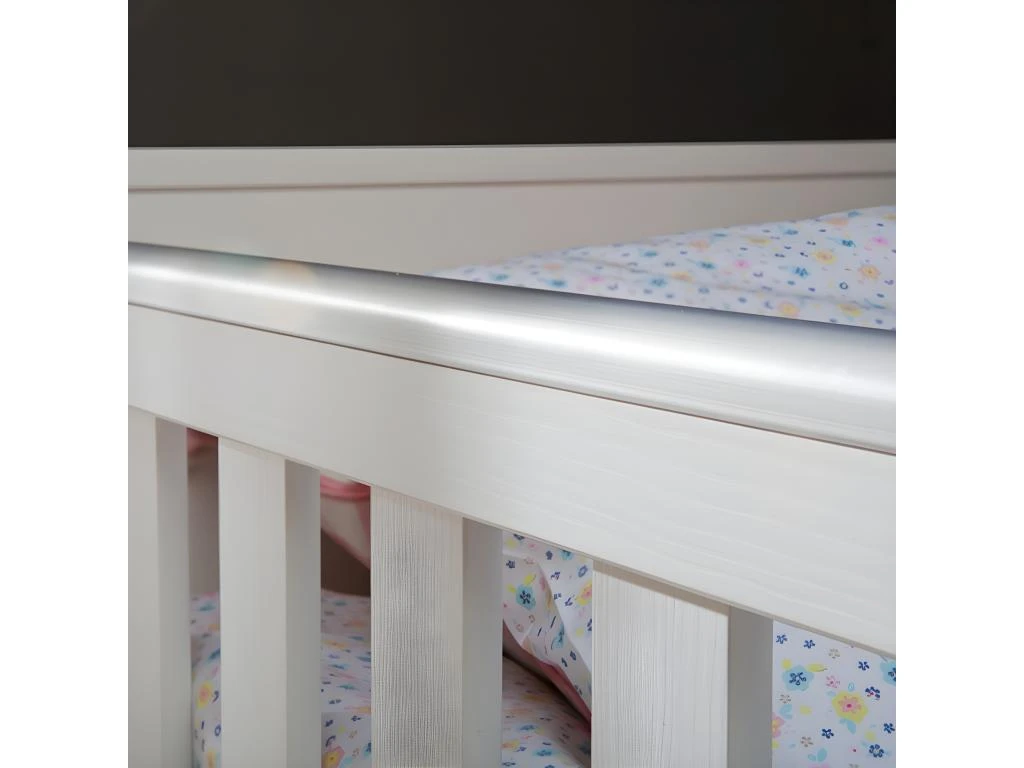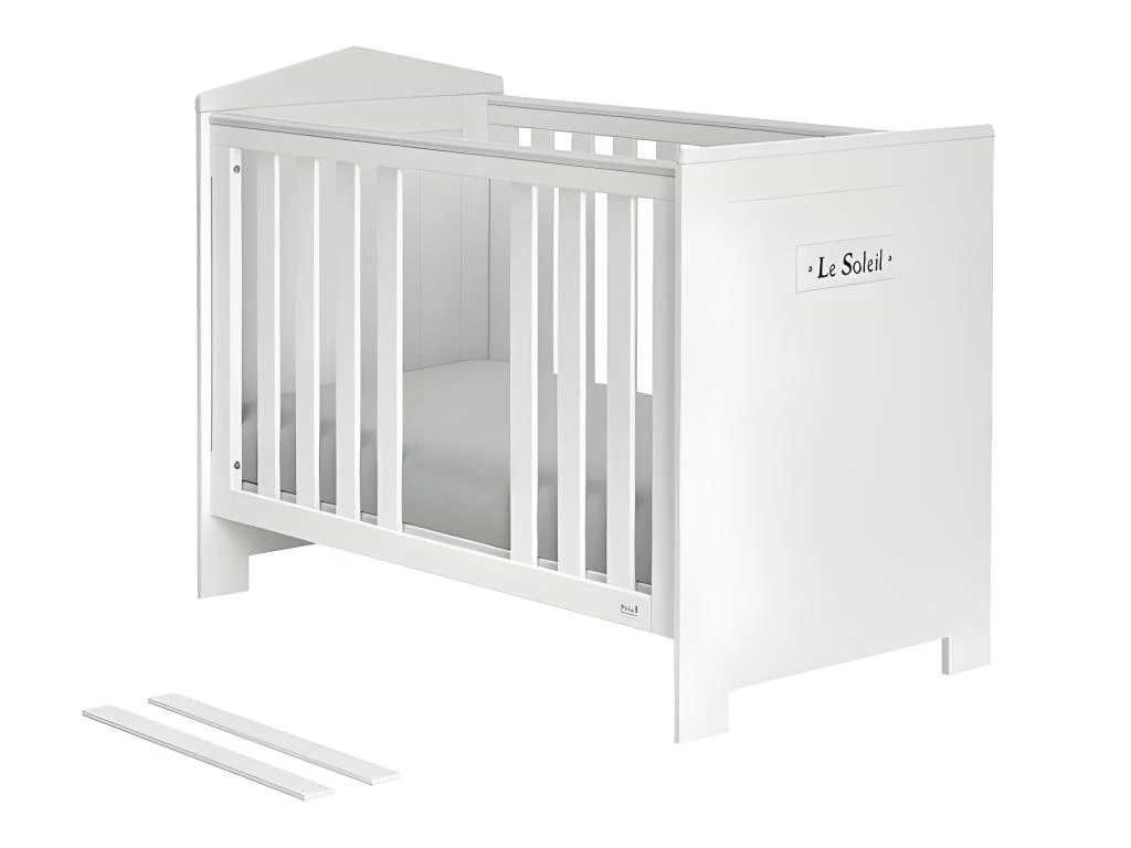 Lit bébé : Sommier inclus réglable en 3 hauteurs – 2 barreaux amovibles – Hauteur du matelas conseillé 12 cm vendu séparément