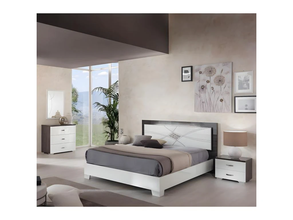 Chambre Lucia laqué blanc et chêne anthracite composée de :